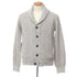 エアリーな風合いのミドルゲージウール素材を用いたショールカラーカーディガンです。グレーとライトブルーが織り交ざった美しい色合いになりまして、部位によって違うケーブル編みが高級感を感じさせます。秋のちょっとしたアウターとしてはもちろん、真冬のインナーとしても重宝する一着です。