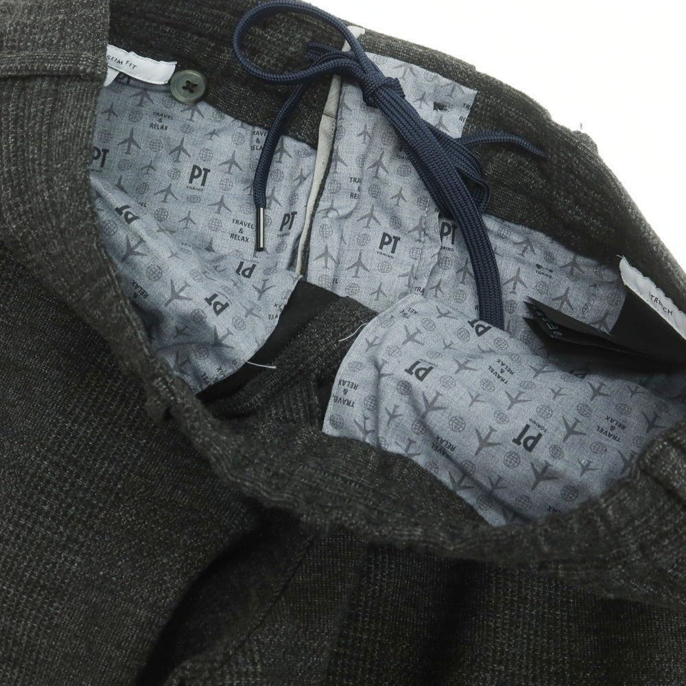 【中古】ピーティートリノ PT TORINO レーヨンナイロン ジャージー グレンチェック イージースラックスパンツ ブラックxグレー【 44 】【 状態ランクB 】【 メンズ 】