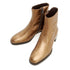 アッパーにしなやかなカーフ素材を用い、メタリックブラウンカラーで仕上げたサイドジップブーツ。丸みを帯びたパターンがエレガントなブーツになりまして、コーディネートに一味違う華やかさを与えてくれるデザインになっています。サイドジップ仕様になりまして、脱ぎ履きが楽なのも嬉しいポイントです。