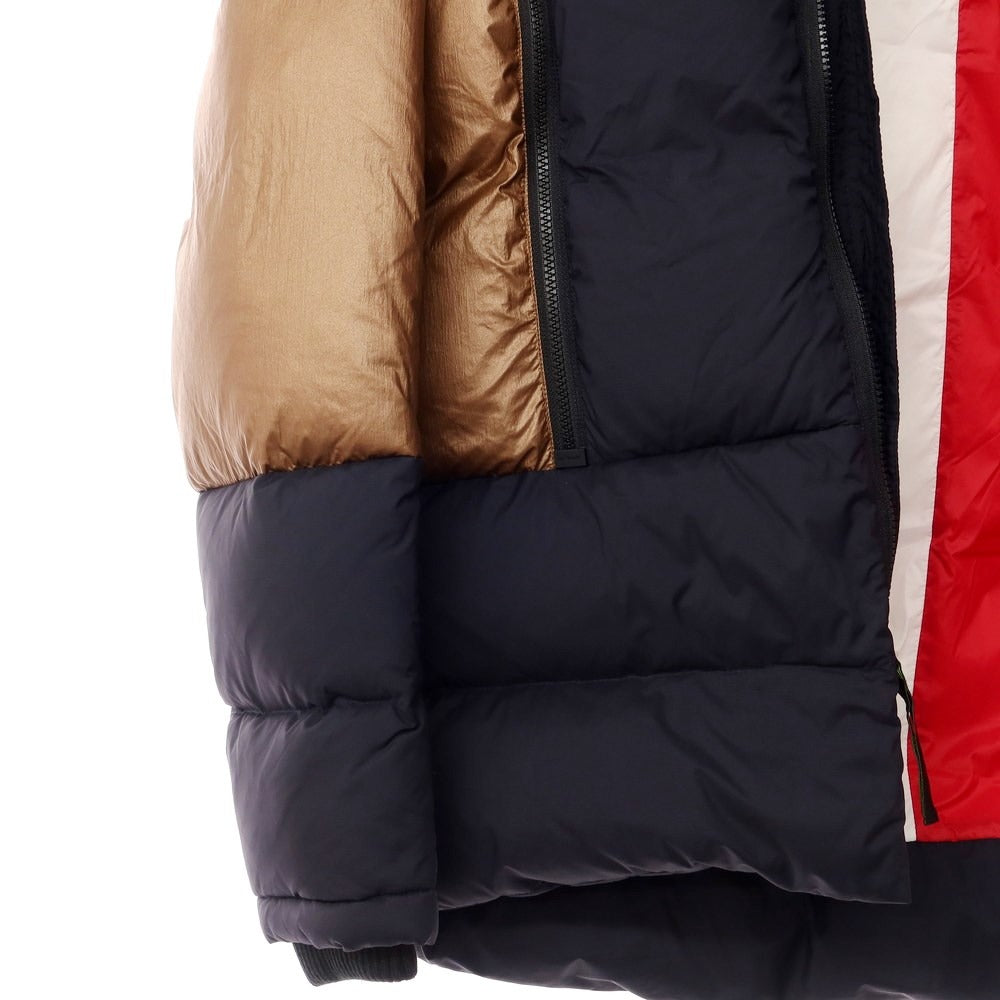 シャリ感のあるストレッチナイロン生地を使用したダウンジャケットです。ボリューム感のあるダウン&フェザーを全体に配した、保温性の高い一着。光沢感のあるブラウン生地の切り替えや、裏地のトリコロールカラーがアクセントになっています。
