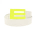 程よく厚みのあるレザー素材を使用したバックルベルトです。ネオンイエローのバックルとホワイトのレザーの組み合わせで、コーディネートの差し色としても重宝するアイテムです。