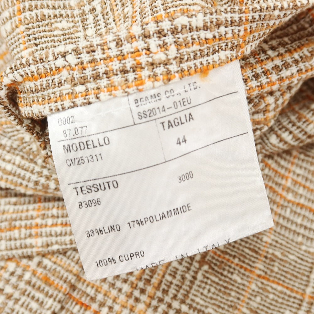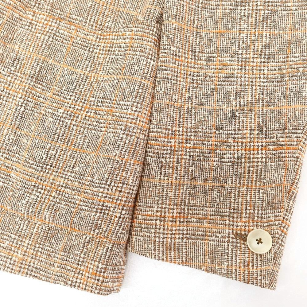 【中古】エルネスト ernesto GFB リネン チェック テーラードジャケット ミックスブラウンxオレンジ【 44 】【 状態ランクB 】【 メンズ 】 [EPD]