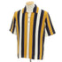 ブークレー糸で編まれたストライプ柄のコットンナイロンニット地を使用した、半袖ポロニットです。爽やかさと遊び心を兼ね備えたオレンジ系・ネイビー・ホワイト・パープルの大胆なストライプ柄が、春夏の装いに彩りを添えます。柔らかなタオル地のような肌触りが魅力のニット素材が、快適な着心地を実現した一着。一枚でも様になる、季節感あふれるアイテムです。春夏のリゾートや街歩きにもぴったりの一枚です。