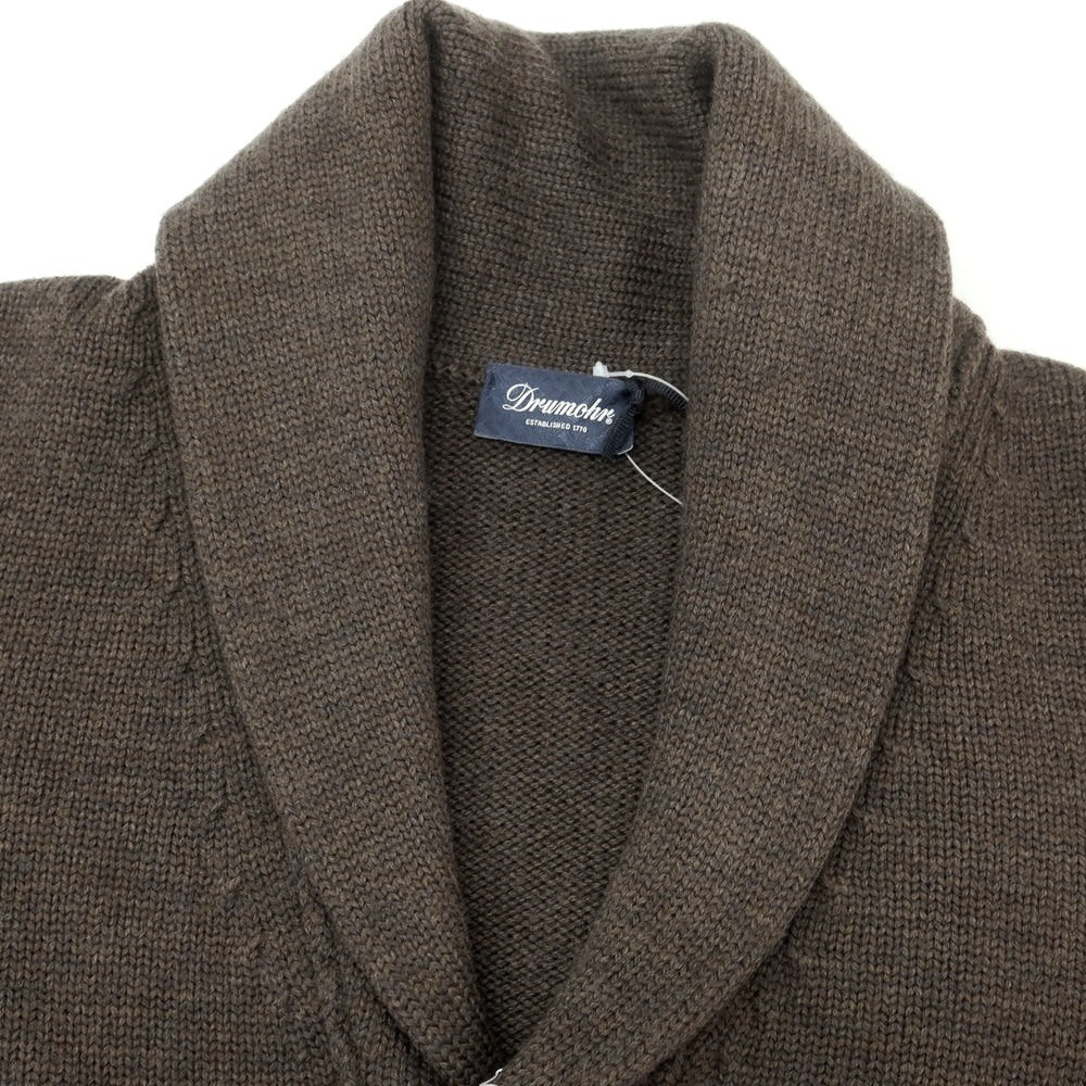 【中古】【未使用】ドルモア DRUMOHR ミドルゲージ ウール ショールカラー カーディガン ダークブラウン【 48 】【 状態ランクS 】【 メンズ 】