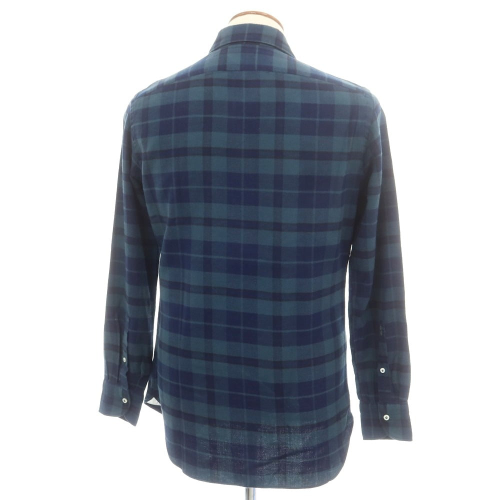 【中古】サンフォート Sanfort コットン チェック ホリゾンタルカラー カジュアルシャツ ダルブルー系xネイビー【 39 】【 状態ランクA 】【 メンズ 】
