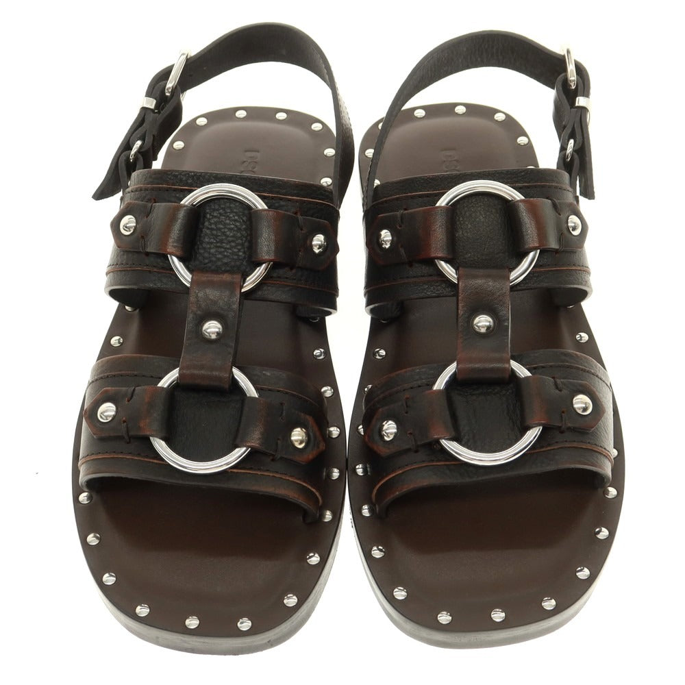 ![【新品】ディースクエアード DSQUARED2 レザー スタッズ サンダル ダークブラウン【 42 】【 状態ランクN 】【 メンズ 】