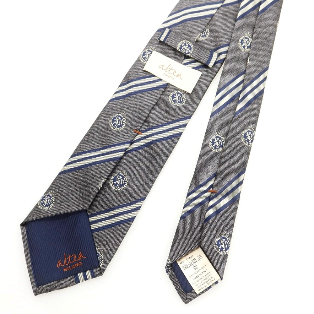 【中古】アルテア Altea シルクコットン クレスト ストライプ柄ネクタイ グレーxネイビー【 状態ランクB 】【 メンズ 】