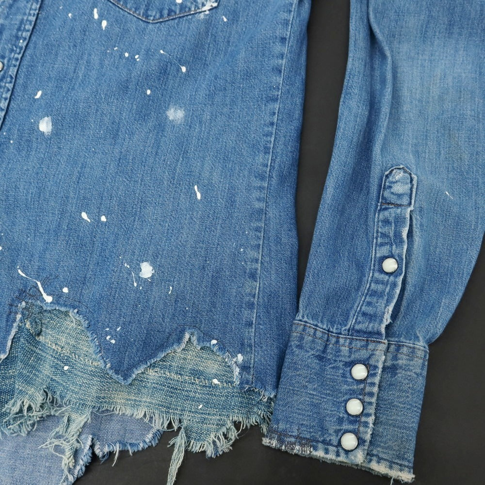 【中古】リベアバイジョンブル rebear by Johnbull Wrangler リメイク デニム ウエスタンシャツ ブルー【 F 】【 状態ランクC 】【 メンズ 】