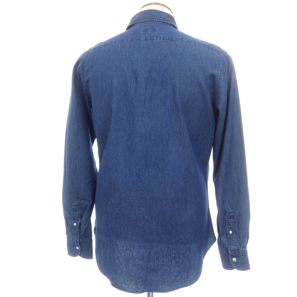 【中古】ジー ピコーネ G.Picone コットン ダンガリー セミワイドカラー カジュアルシャツ ライトネイビー【 40 】【 状態ランクB 】【 メンズ 】