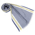 - This striped scarf is made of soft silk fabric with a dry touch. It is made of high-quality fabric with a natural sheen, and the design is attractive with navy stripes and yellow lines as accents. It is an item that will give you a stylish look just by incorporating it into your outfit.