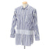 - 適度な張りがあるブロード織りコットンを用いた、2023年秋冬の切替ストライプシャツです。長い着丈に大胆な切替を配したギャルソンシャツらしいデザインになりまして、着るだけで洒落感を醸し出す一着になっています。