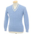 【中古】フィリッポ デ ローレンティス FILIPPO DE LAURENTIIS ケーブル編み ウールカシミヤ Vネック プルオーバーニット ライトブルー【 44 】【 状態ランクC 】【 メンズ 】