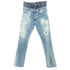 やや薄手のウォッシュドデニムに、ユーズド感あふれるクラッシュ&リペア加工を施したセミフレアシルエットのジーンズ”Skinny Twin Pack Jean”です。ウエスト部分には、内側がショートパンツのようになったダブルレイヤー仕様の個性的なデザインを採用し、スタイリングに遊び心をプラスした一本です。