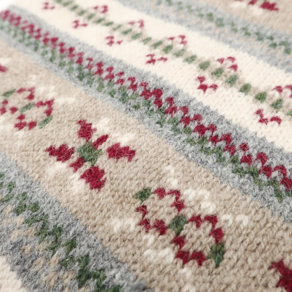 - ドライタッチで柔らかなウールニット地を使用した、ノルディック柄調のマフラーです。秋冬コーディネートにぴったりな、暖かみのある生地感と柄が魅力的なアイテムです。