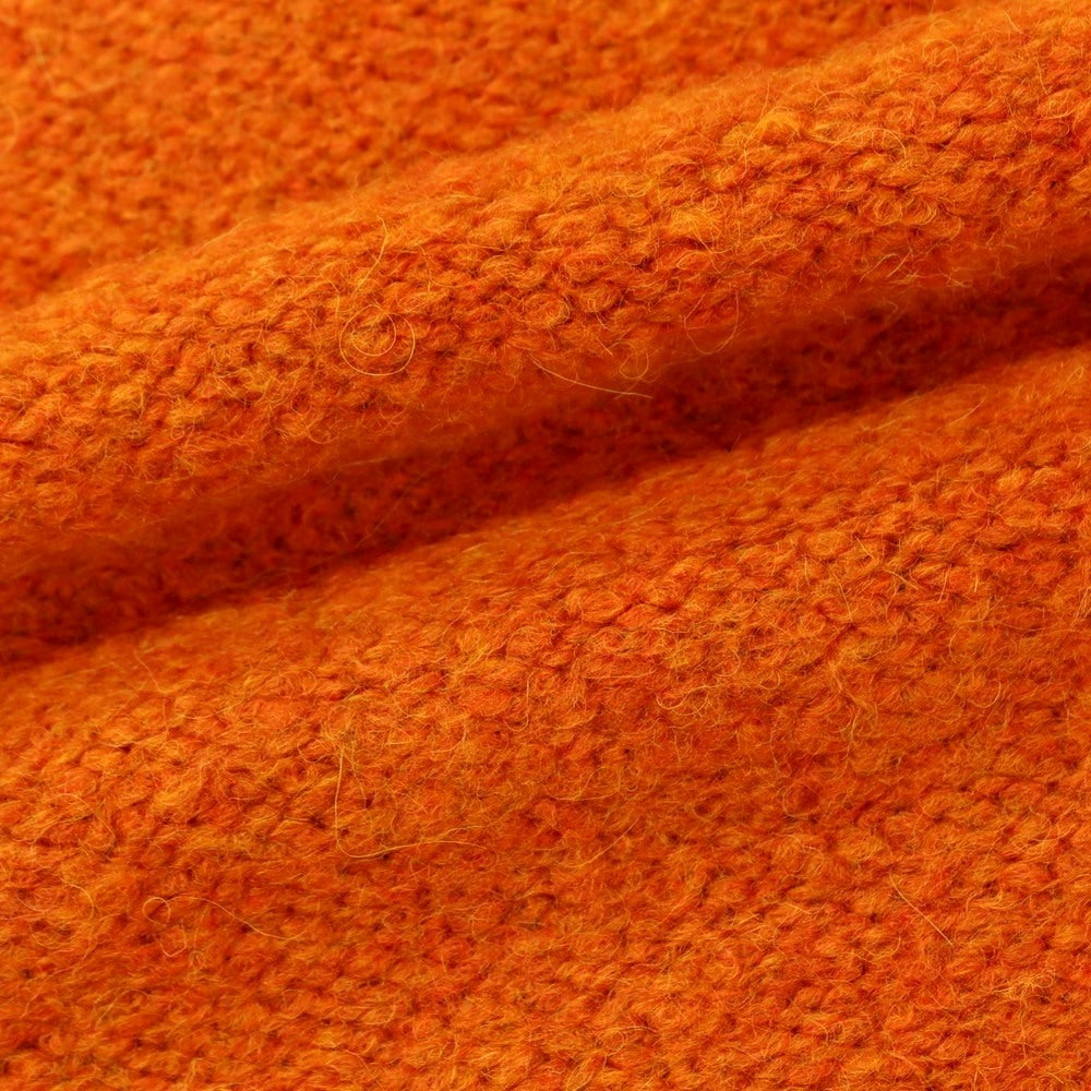 起毛感のある柔らかなアクリルアルパカ系ニット生地を使用した、クルーネックニットです。程よい厚みと暖かみのある生地感とオレンジ系の華やかなカラーで、単調になりがちな秋冬のコーディネートのアクセントになる一着です。