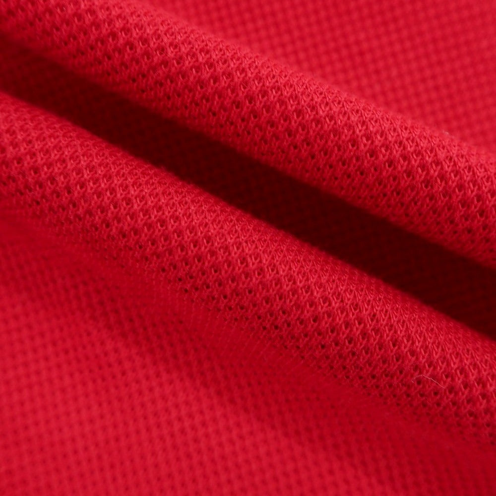 ドライタッチで通気性の良い鹿の子コットン生地を使用した、半袖ポロシャツです。シンプルなデザインながら、鮮やかなレッドカラーがスタイリングに華やかさを添えてくれる一ましです。ドレスシャツのように設計された襟元と、白ボタンのコントラストが上品さを際立たせ、ジャケットインにも相性良好。春夏のカジュアルシーンはもちろん、スマートカジュアルな場面にも頼れる一着です。