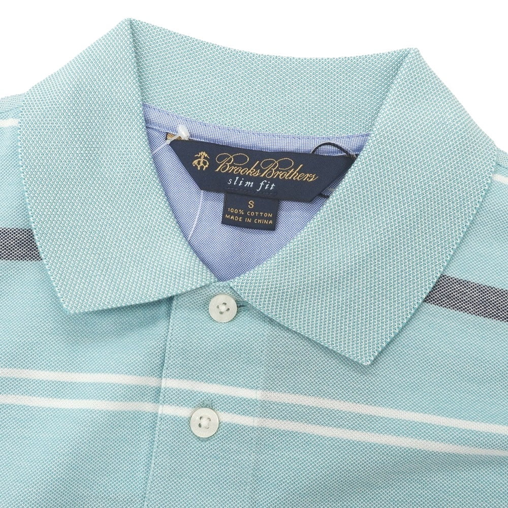 【中古】【未使用】ブルックスブラザーズ Brooks Brothers コットン 鹿の子 ボーダー 半袖ポロシャツ ミントブルー【 S 】【 状態ランクS 】【 メンズ 】
